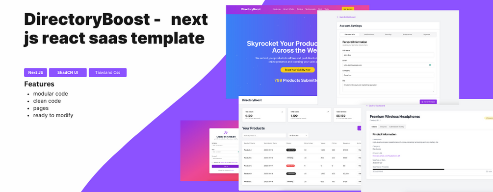 DirectoryBoost -Next js template ShadCN UI