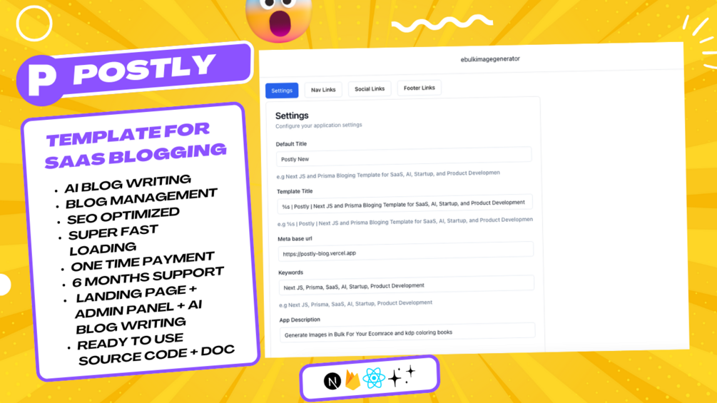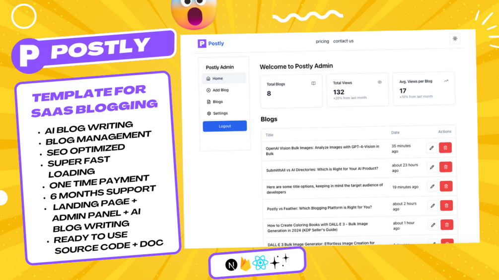 postly comes with Admin Panel to manage all your blogs ( add, delete, edite blogs) setting